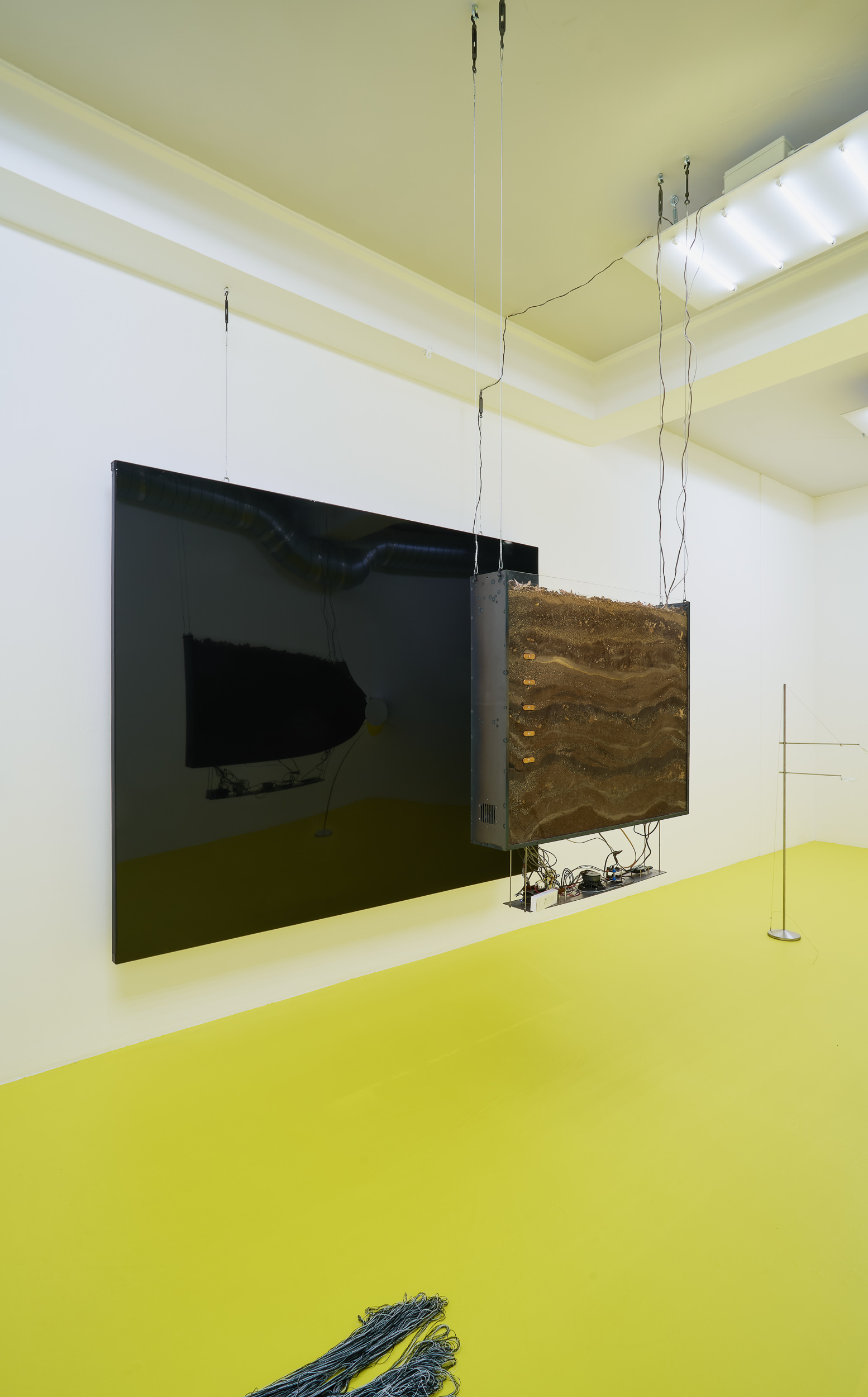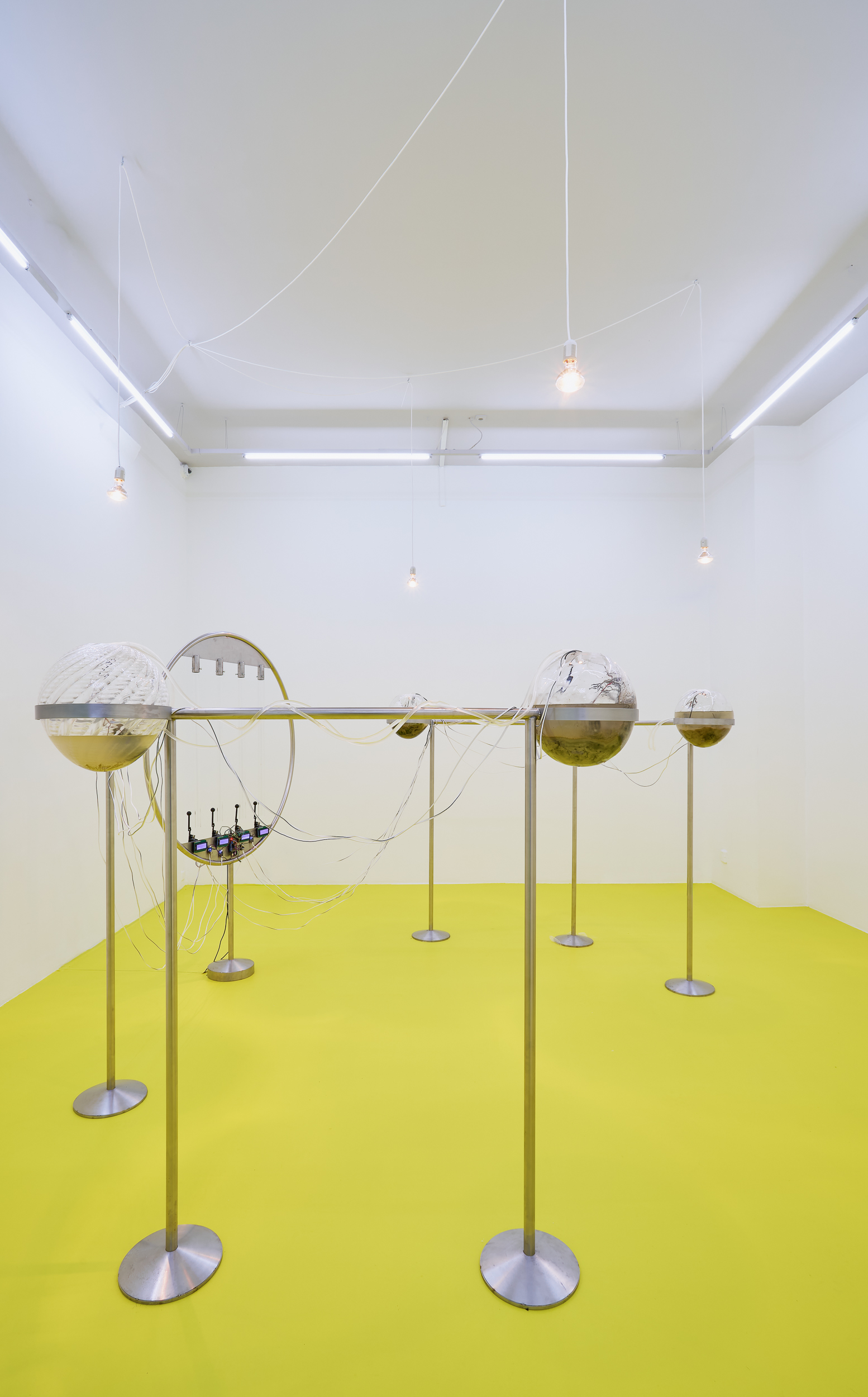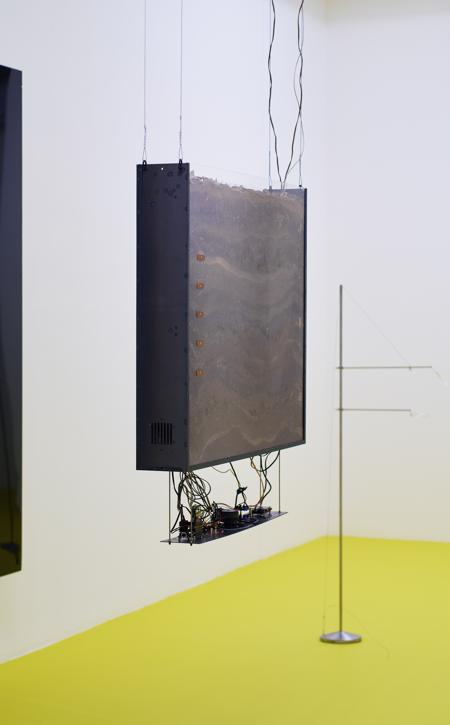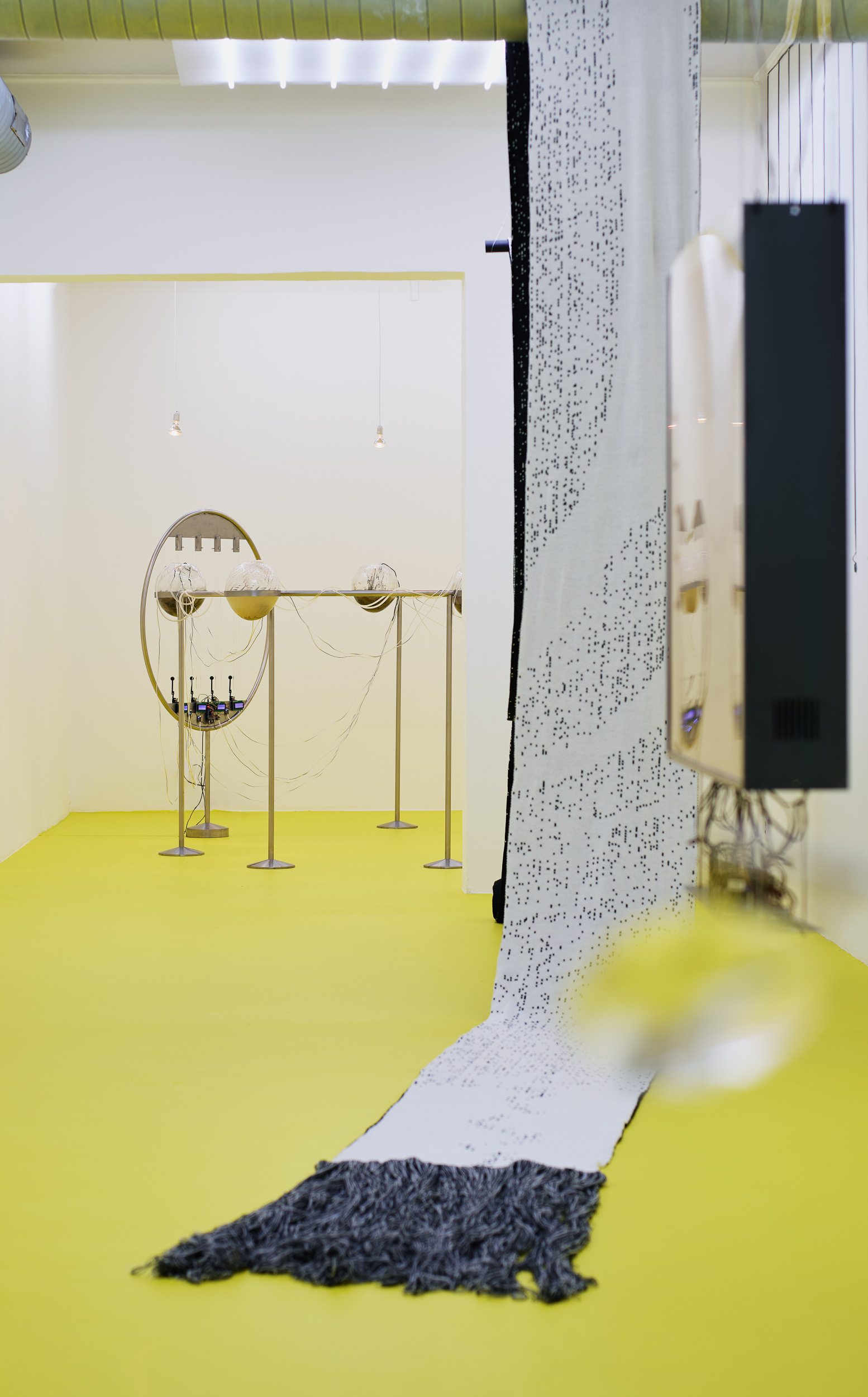 Positioned between site-specific installation and an experimental laboratory, the multimedia exhibition attempts to simulate natural and planetary processes while amplifying biological and physical phenomena that shape the shifting environmental conditions of life in the Anthropocene. The installations work with sound, vibration, data flows, and environmental signals, creating a spatial situation in which visitors become part of a dynamic field of relations between organisms, technologies, and landscape.