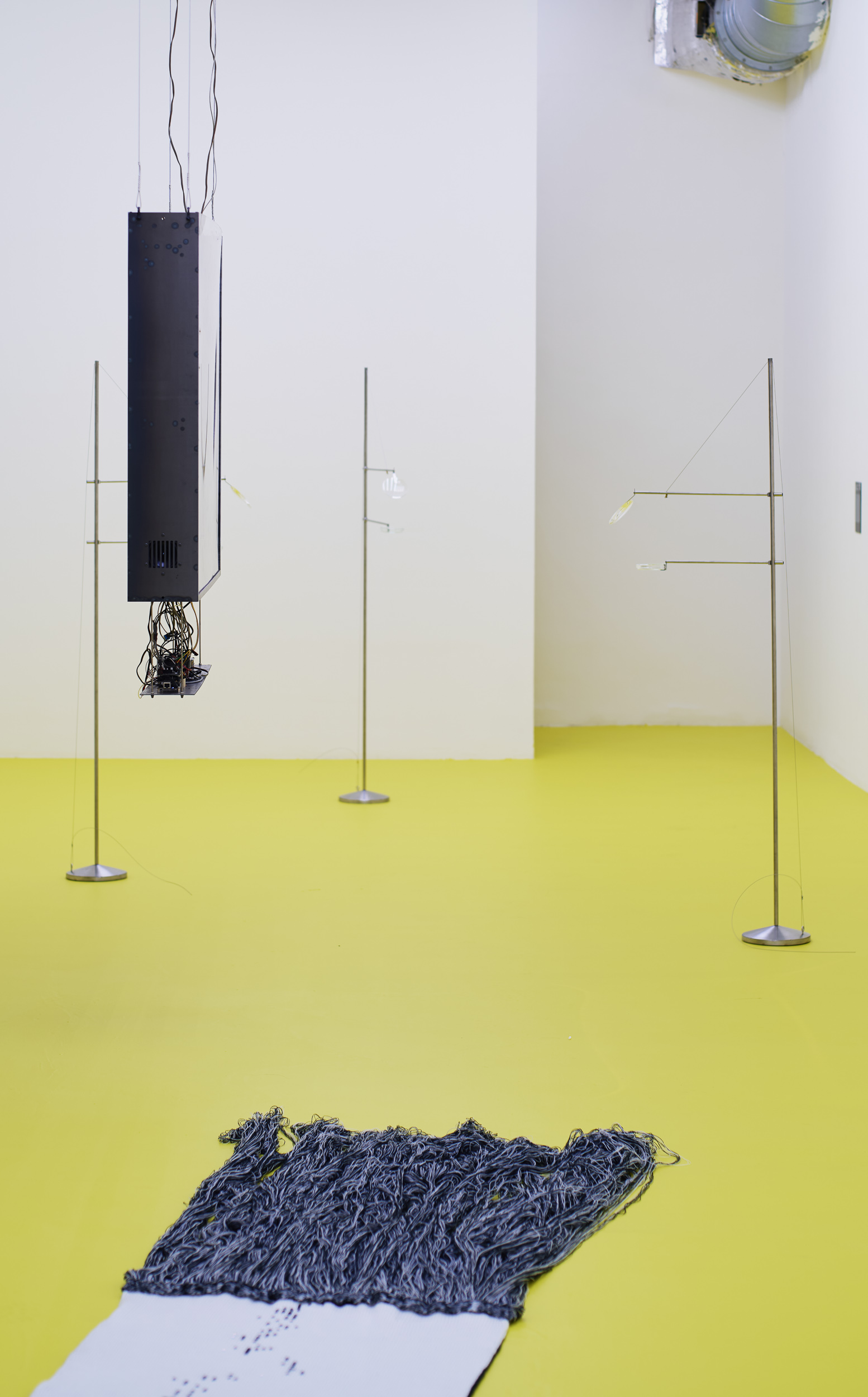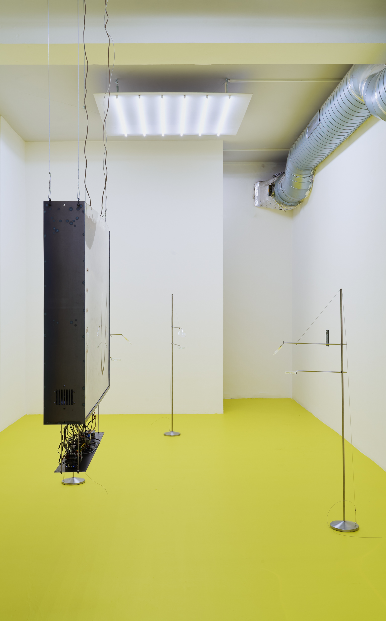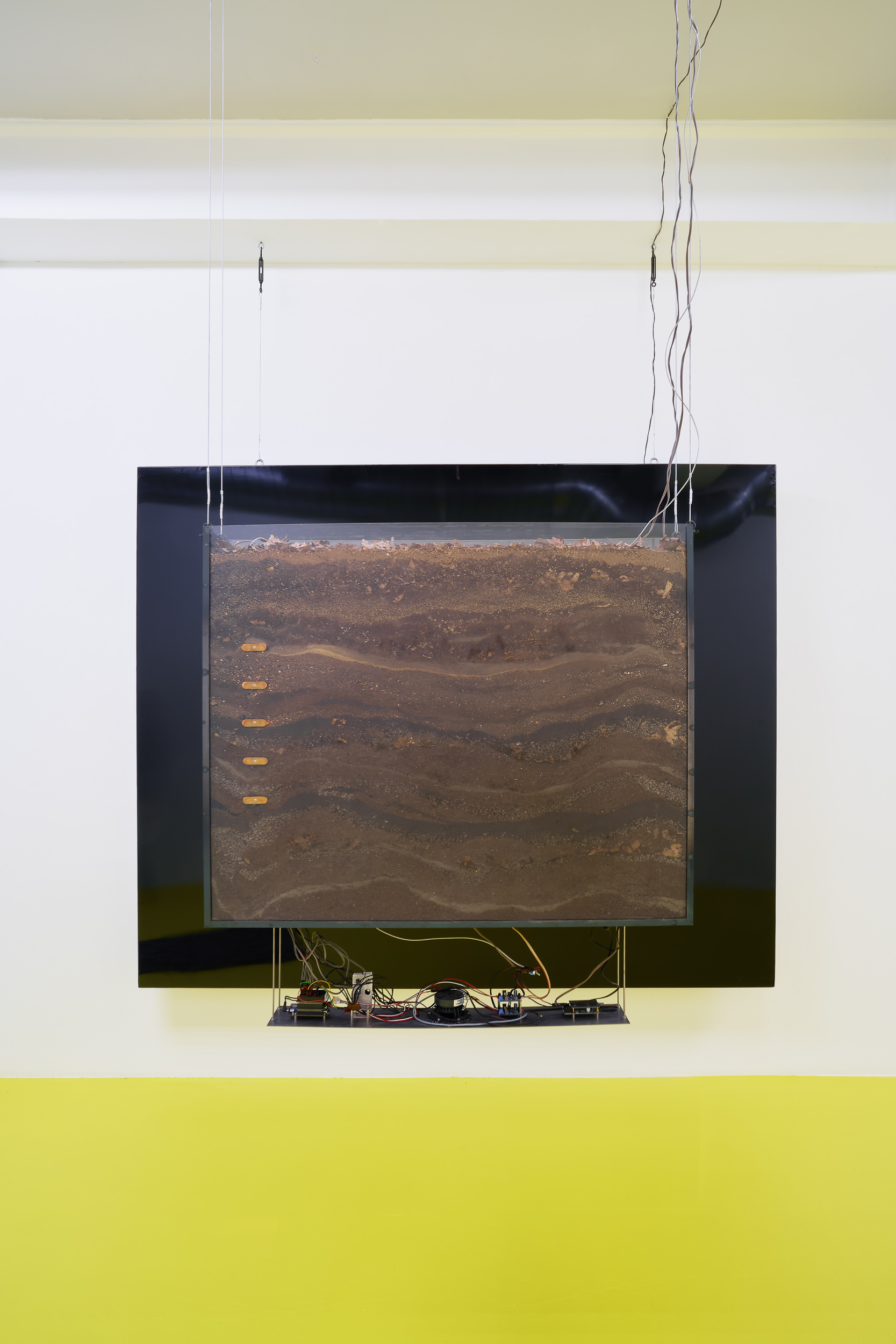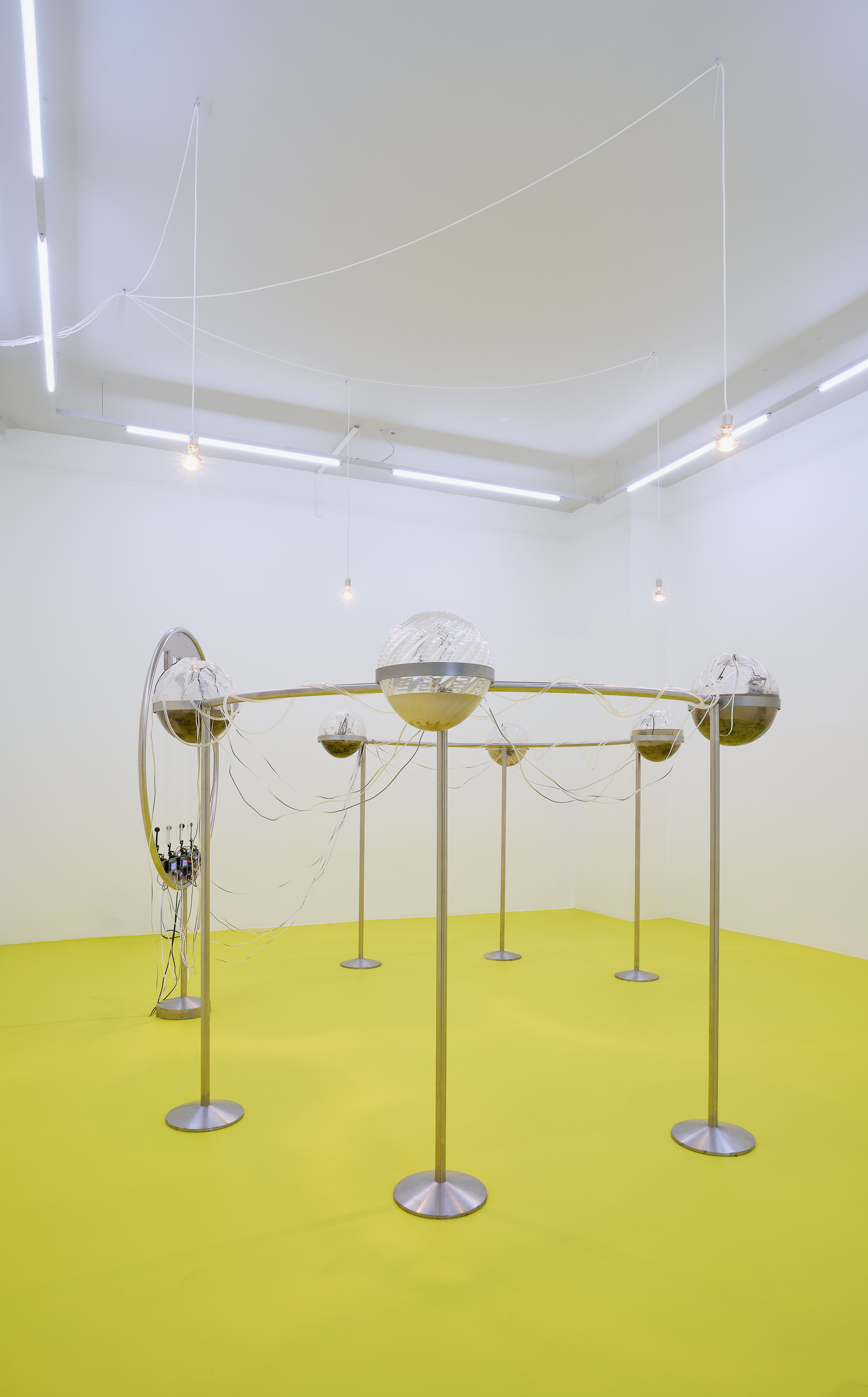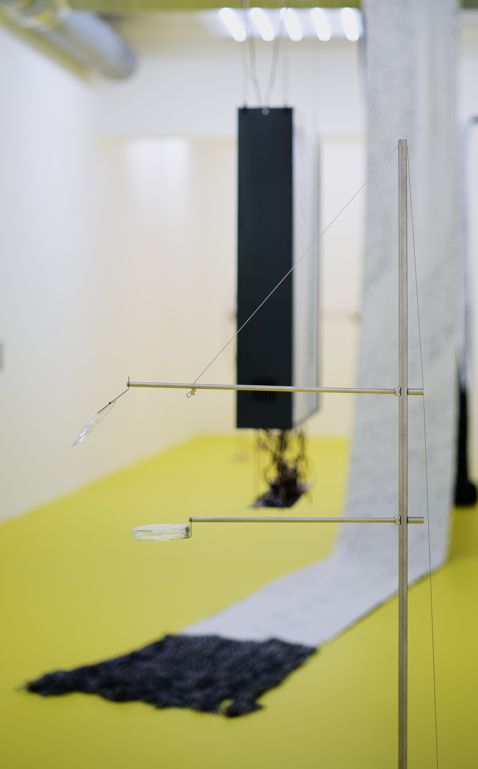 Positioned between site-specific installation and an experimental laboratory, the multimedia exhibition attempts to simulate natural and planetary processes while amplifying biological and physical phenomena that shape the shifting environmental conditions of life in the Anthropocene. The installations work with sound, vibration, data flows, and environmental signals, creating a spatial situation in which visitors become part of a dynamic field of relations between organisms, technologies, and landscape.