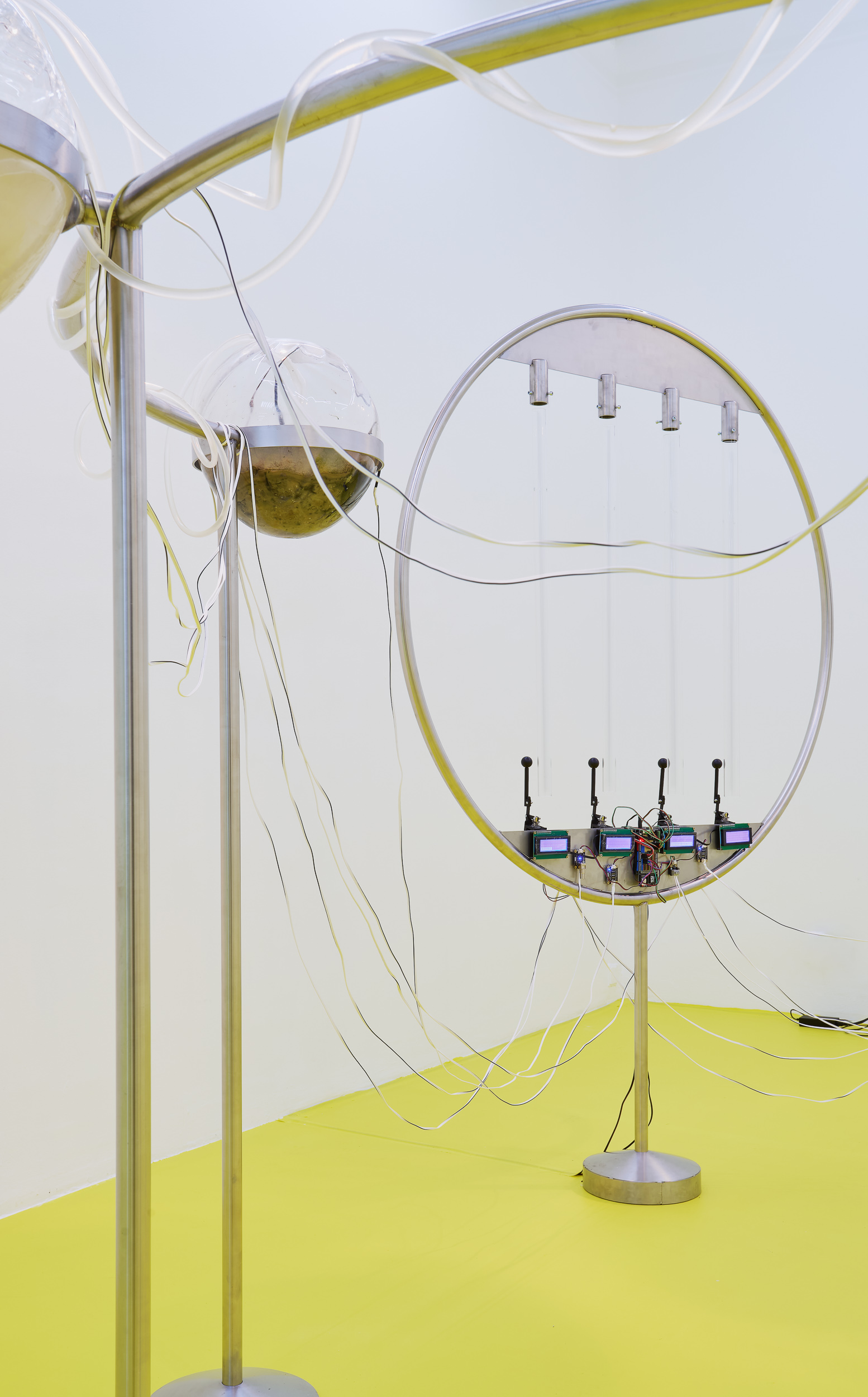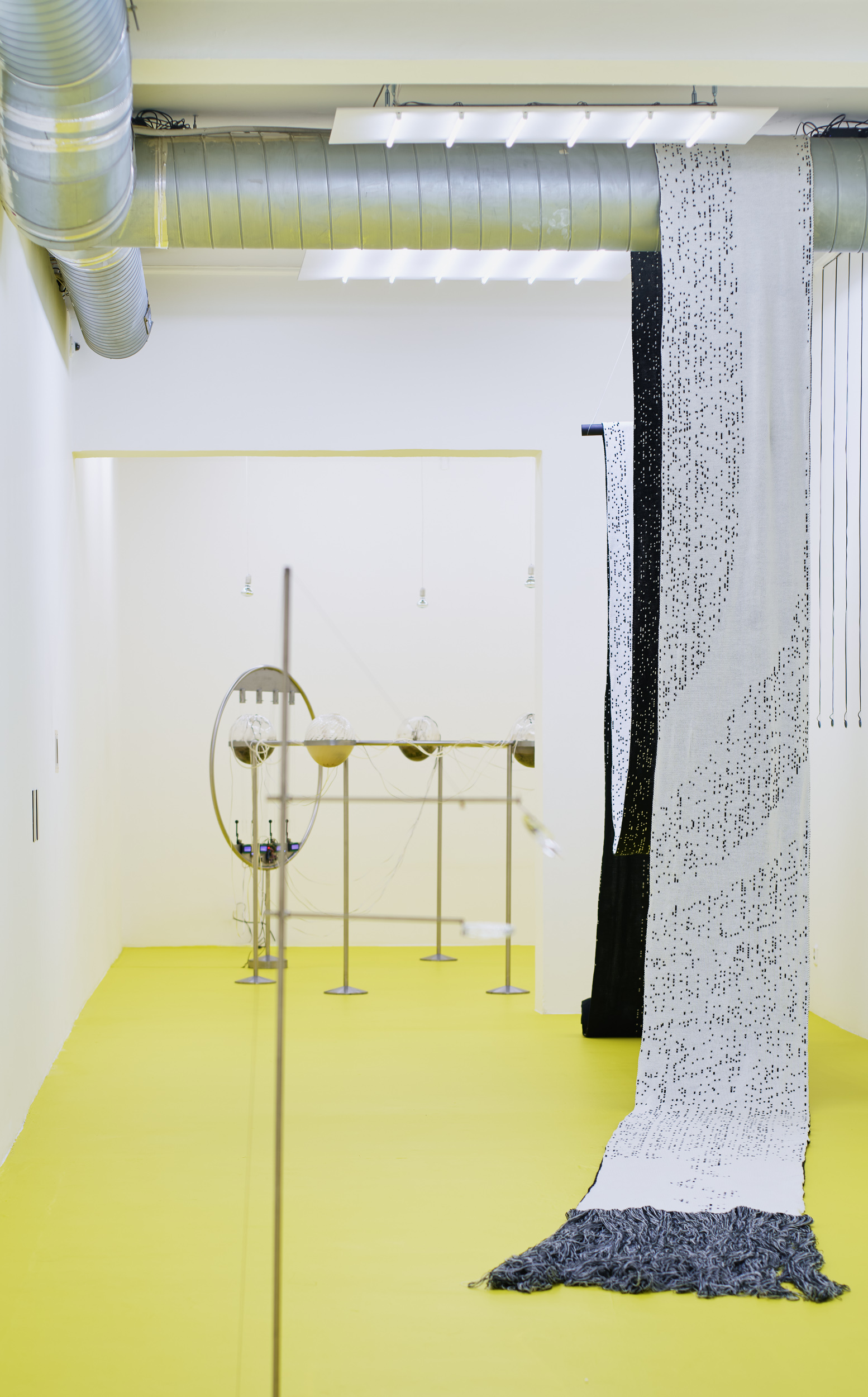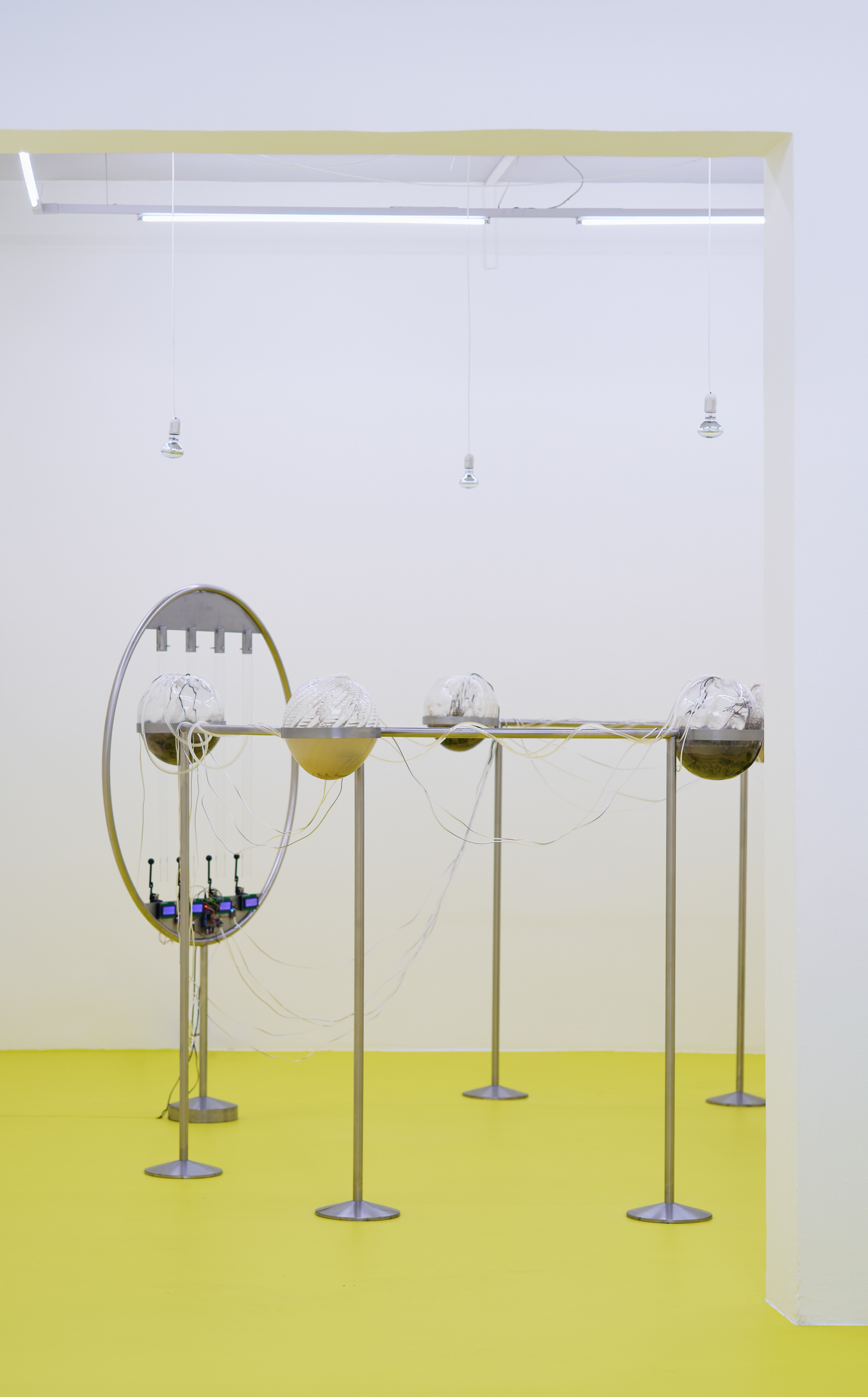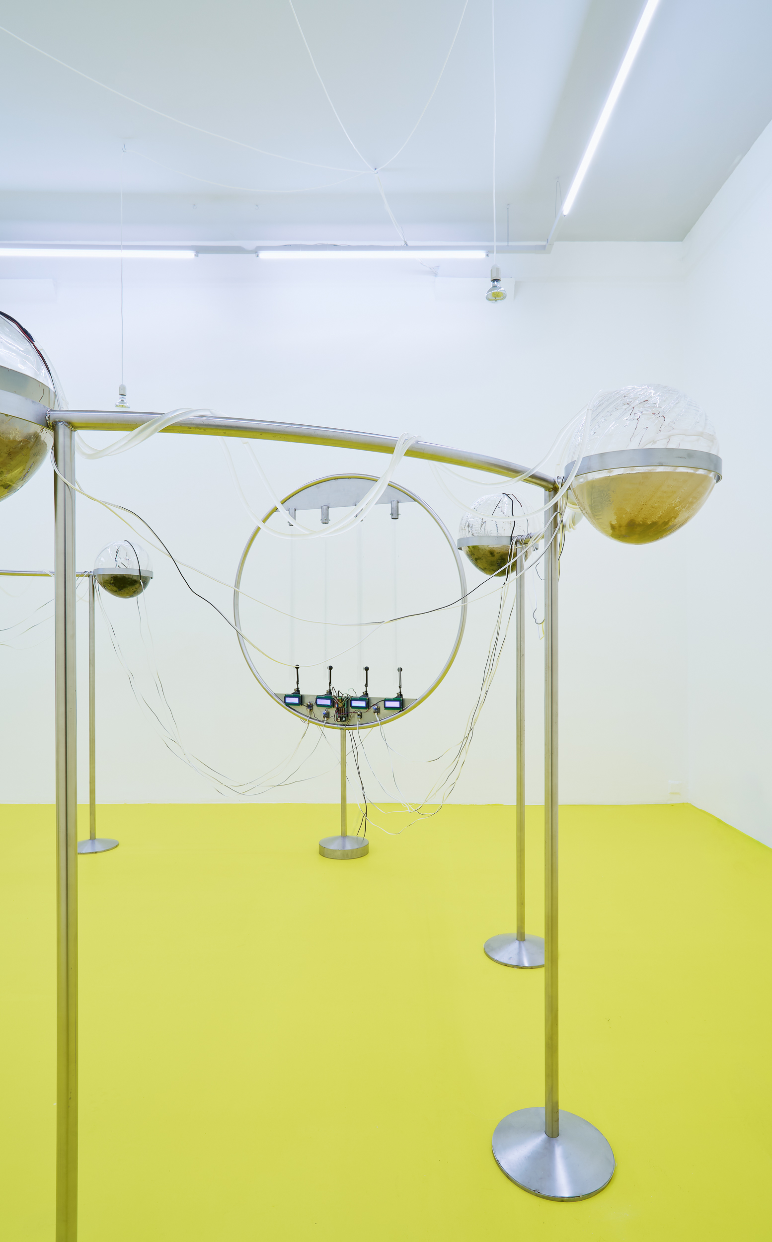 Positioned between site-specific installation and an experimental laboratory, the multimedia exhibition attempts to simulate natural and planetary processes while amplifying biological and physical phenomena that shape the shifting environmental conditions of life in the Anthropocene. The installations work with sound, vibration, data flows, and environmental signals, creating a spatial situation in which visitors become part of a dynamic field of relations between organisms, technologies, and landscape.