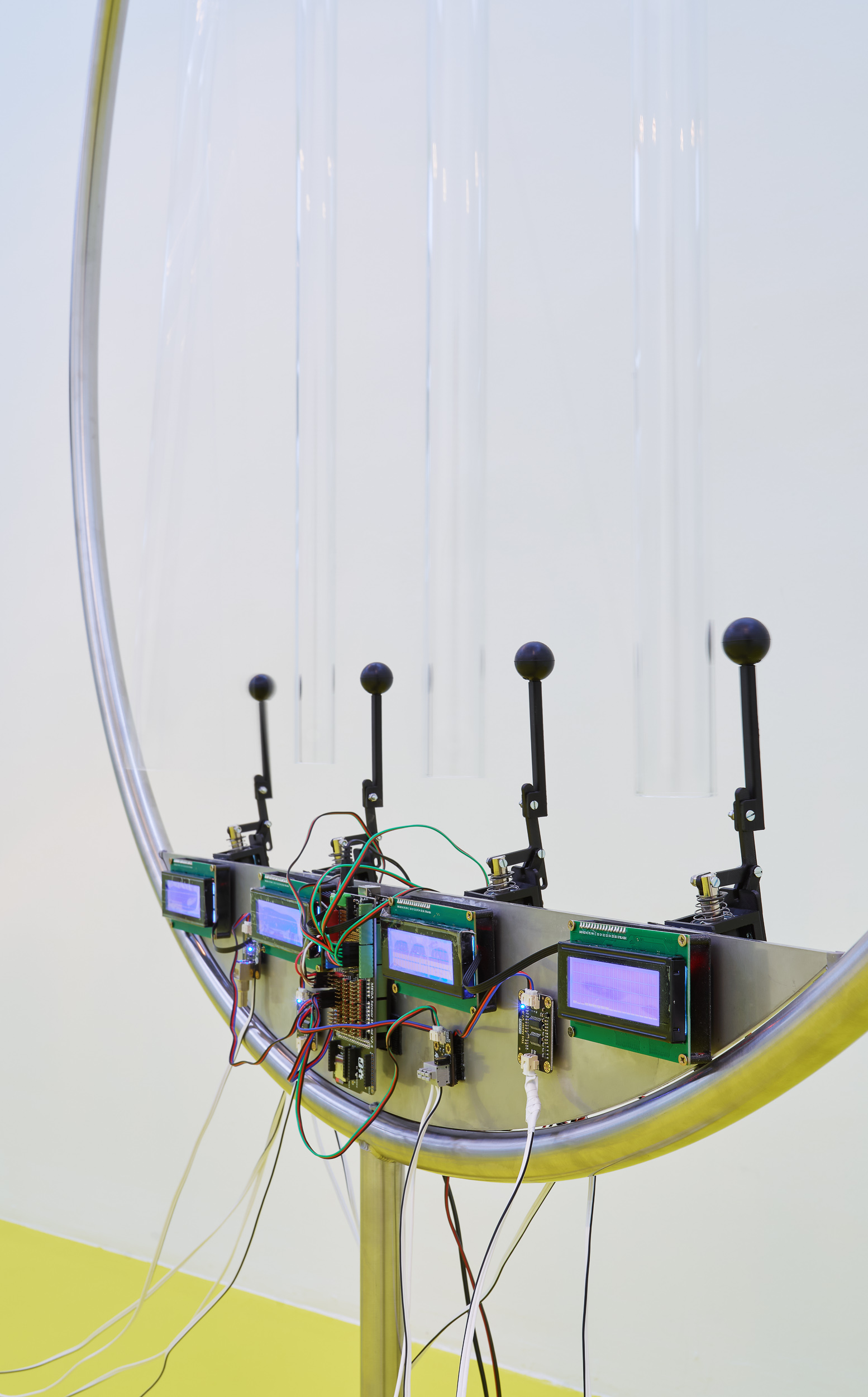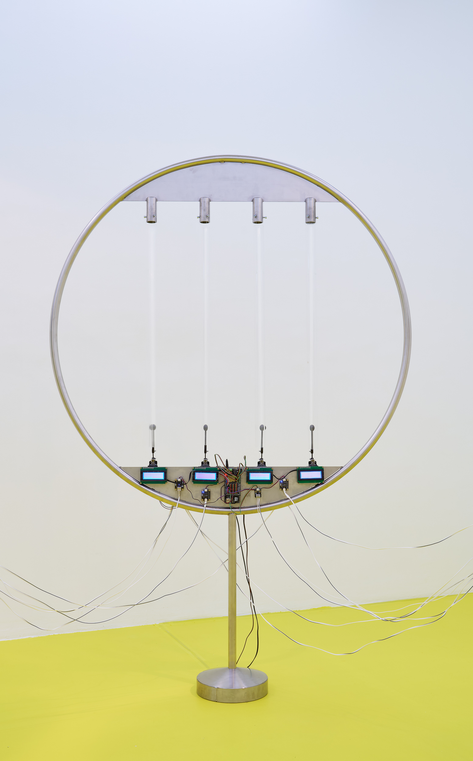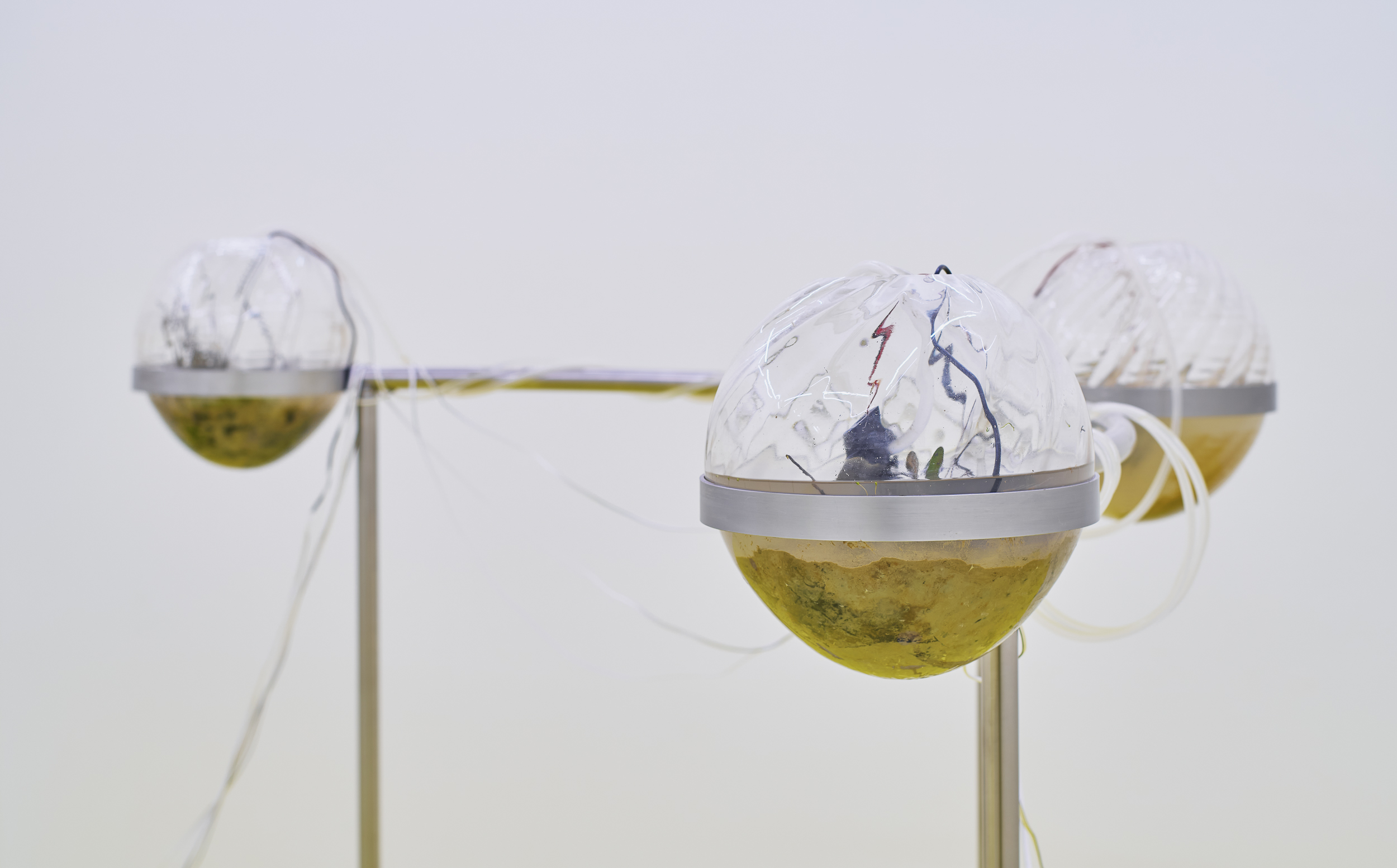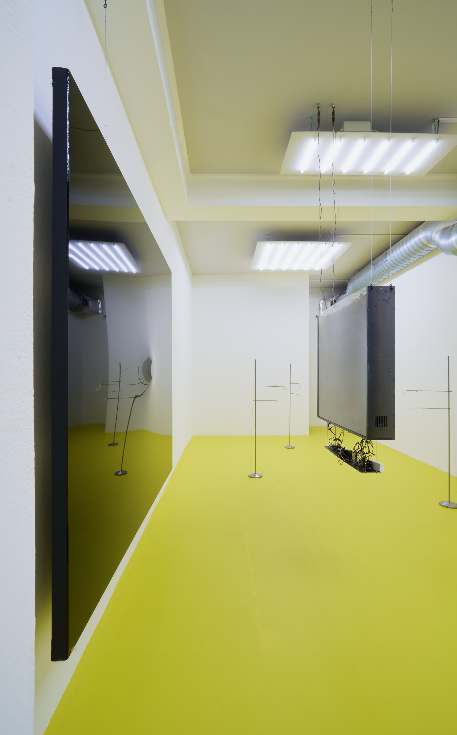 Positioned between site-specific installation and an experimental laboratory, the multimedia exhibition attempts to simulate natural and planetary processes while amplifying biological and physical phenomena that shape the shifting environmental conditions of life in the Anthropocene. The installations work with sound, vibration, data flows, and environmental signals, creating a spatial situation in which visitors become part of a dynamic field of relations between organisms, technologies, and landscape.